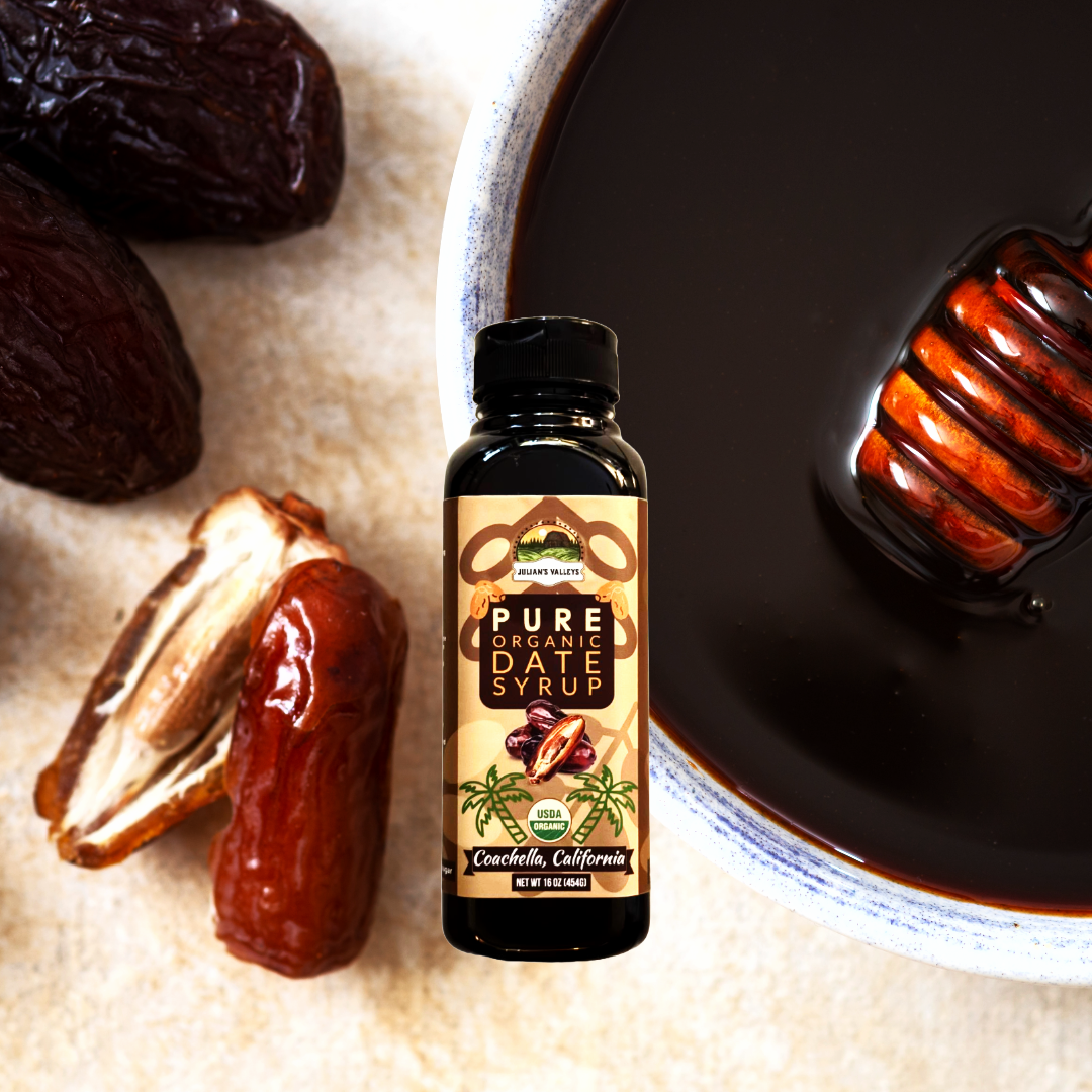 - Organic Date Syrup (16 oz) Rich, velvety, and naturally sweet—this syrup is a wholesome alternative to honey or maple syrup, ideal for drizzling over pancakes or stirring into tea.