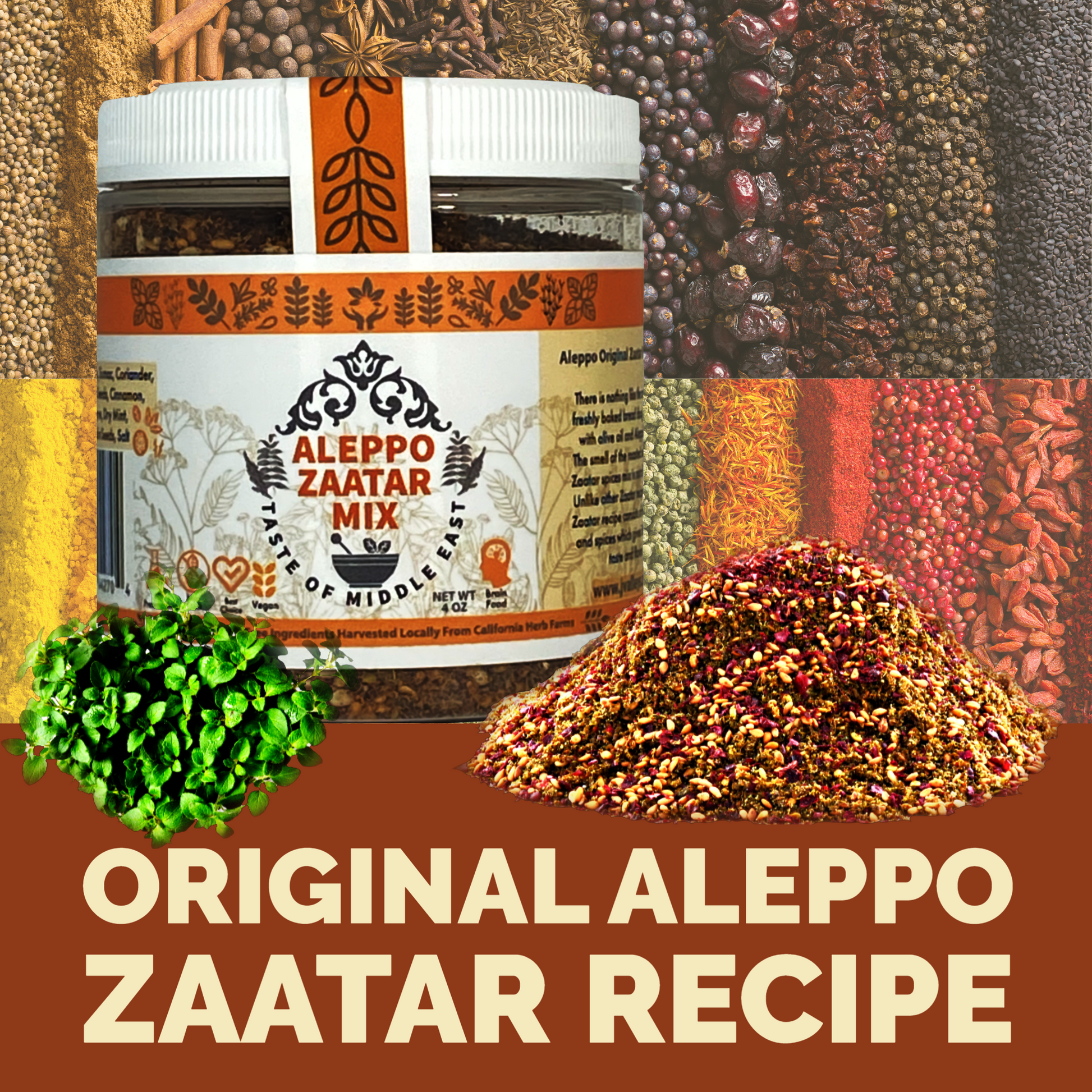 Unlike other Zaatar recipes, Aleppo Zaatar recipe consists of many herbs and spices that are widely used in Aleppo today and for thousands of years. Such combination gives Aleppo Zaatar its unique taste and aroma, which takes you back to Aleppo historic spice market.